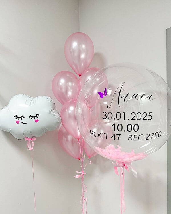 Шар с перьями и индивидуальной надписью