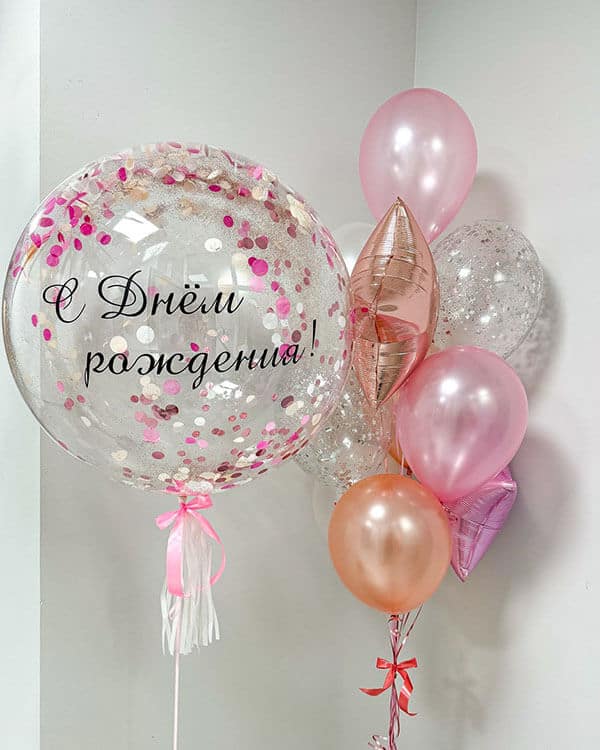 Шар с перьями и индивидуальной надписью